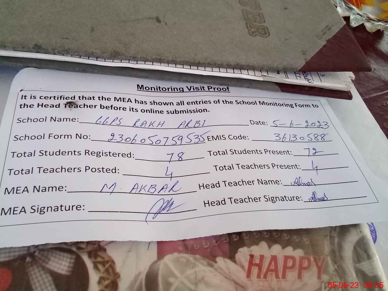 | EMIS Code: 36130588 | Name of School: GGPS RAKH AARBI JALALABAD | |||