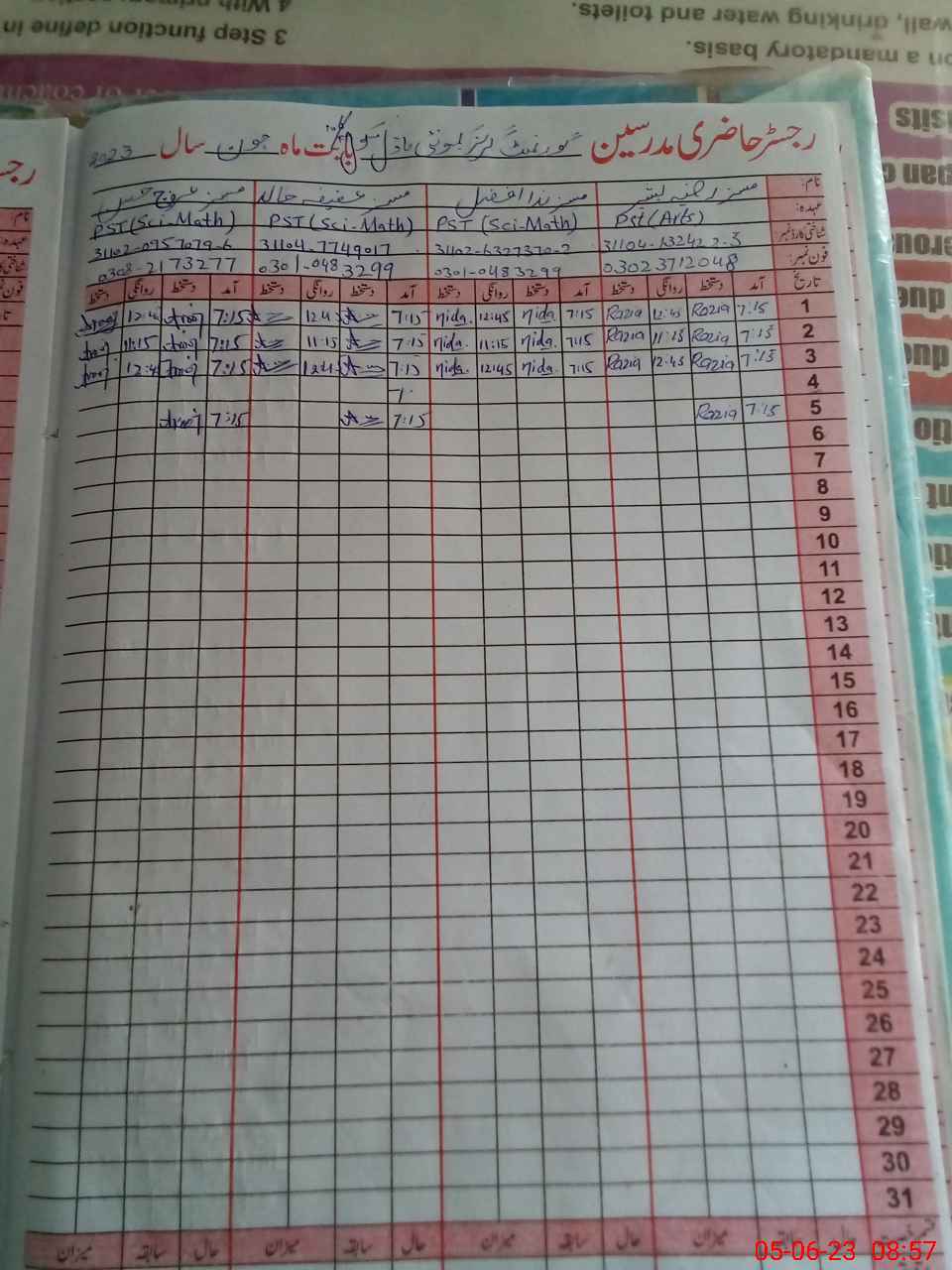 | Name: Fa**** Ya**** Designation: (School Headmaster's/Headmistress's) SST Phone/Cell Number: 03**** |