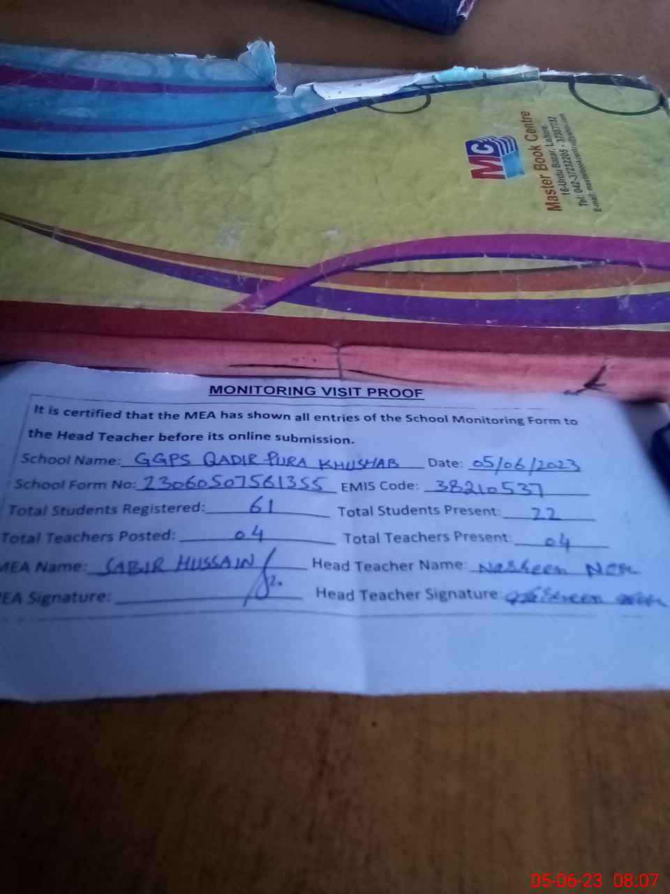 | EMIS Code: 38210537 | Name of School: GGPS QADIR PURA KHUSHAB | |||