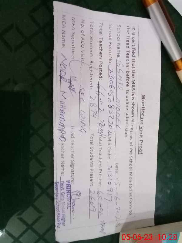 | Certified that this School was Inspected by the Undersigned MEA/DMO Today and the Information Stated Above is as Per Record. | |||||