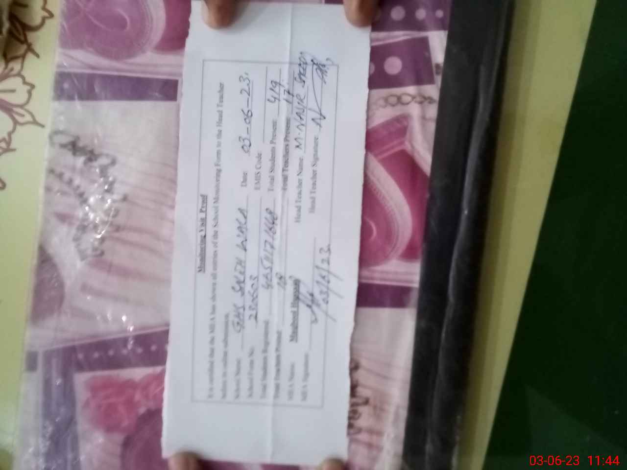 | Name: Bi**** Hu**** Designation: (School Headmaster's/Headmistress's) HEADMASTER Phone/Cell Number: 03**** |