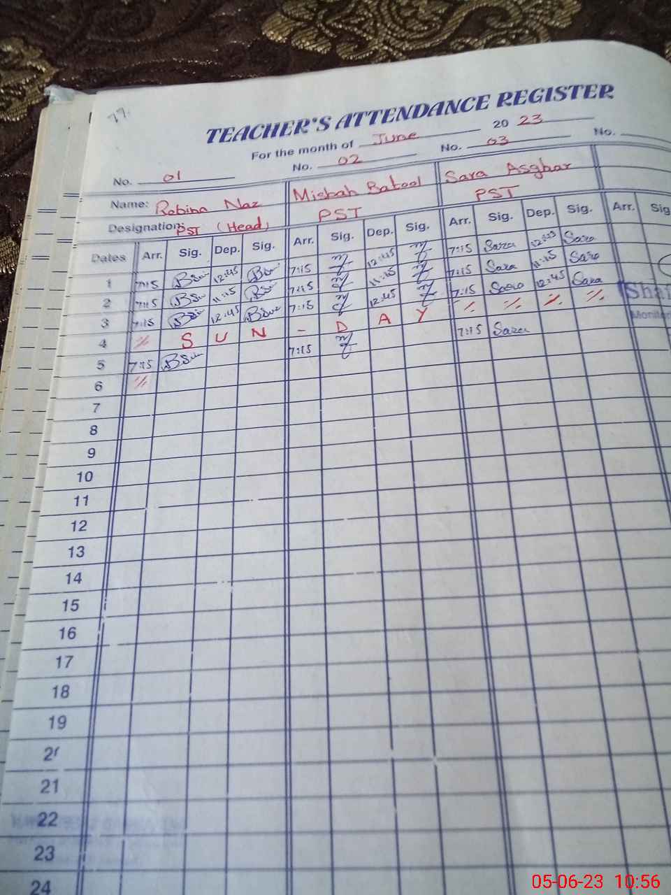 | CNIC | Full Name | Designation | R/C | Absence During Last Calender Month |