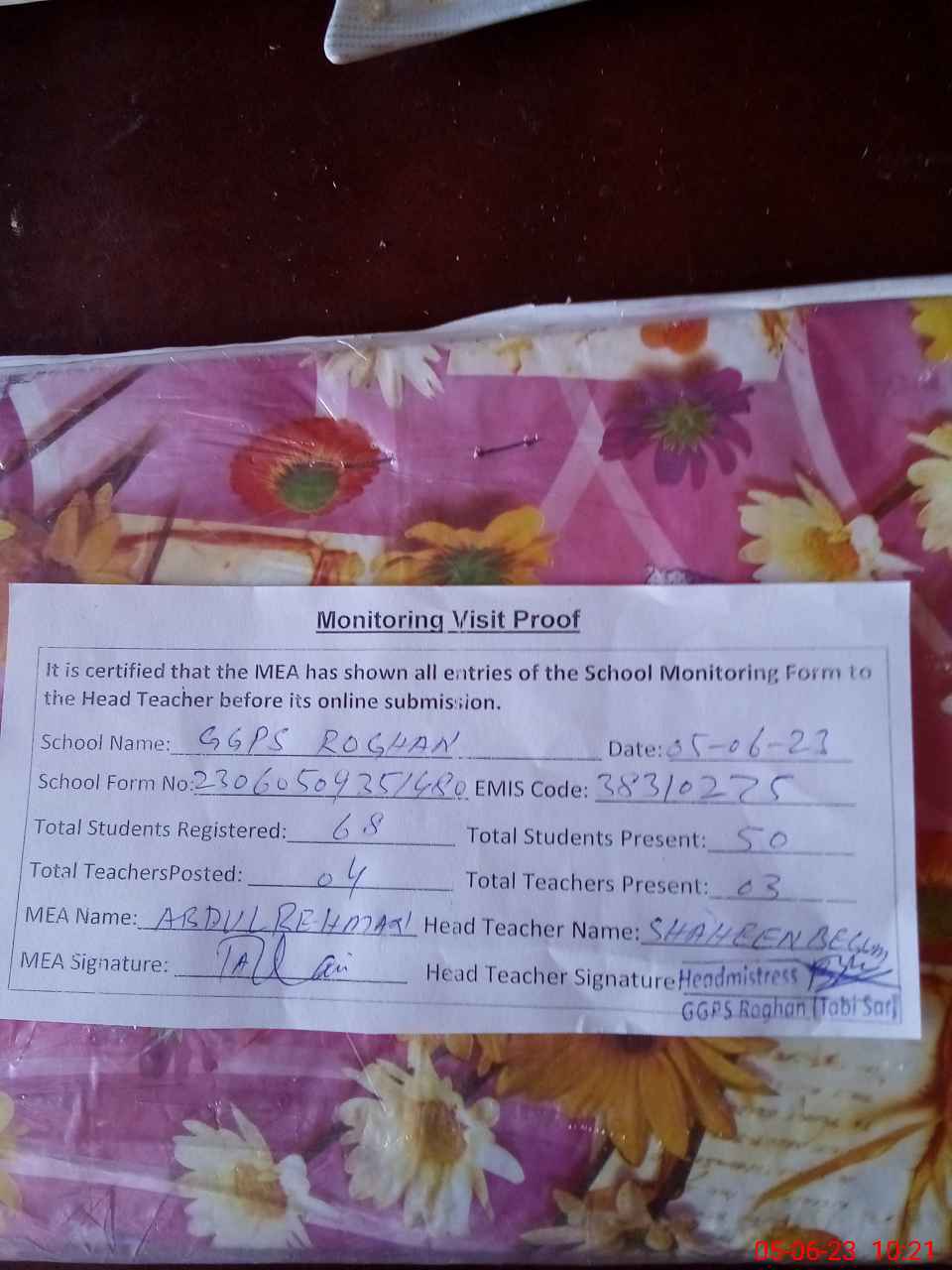 | EMIS Code: 38310275 | Name of School: GGPS ROGHAN P/O TABBI SAR | |||