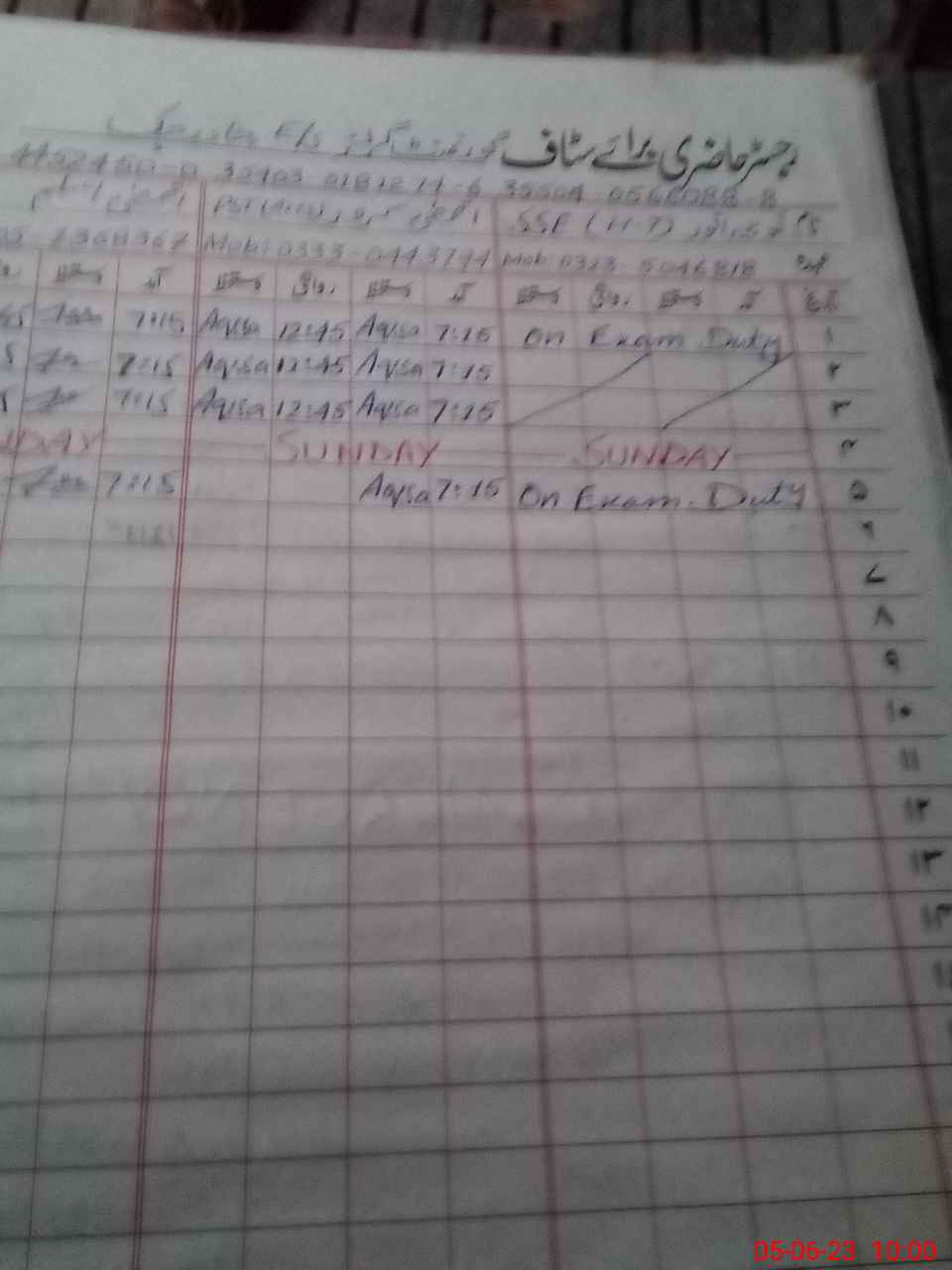 | Name: SO**** AN**** Designation: (School Headmaster's/Headmistress's) SSE ( URDU ) Phone/Cell Number: 03**** |