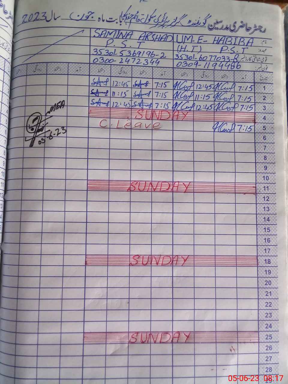 | Name: Um**** Ha**** Designation: (School Headmaster's/Headmistress's) PST Phone/Cell Number: 03**** |