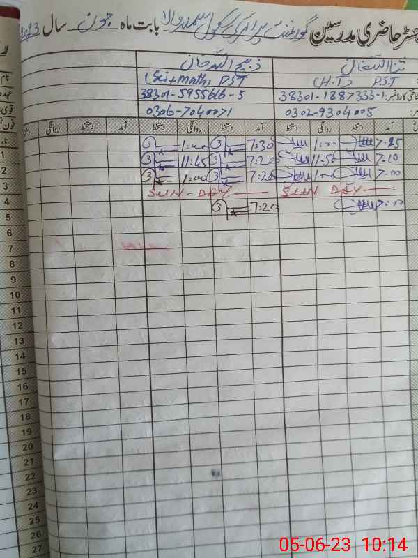 | Name: SA**** KH**** Designation: (School Headmaster's/Headmistress's) PST Phone/Cell Number: 03**** |