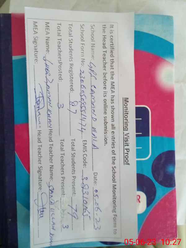 | EMIS Code: 38310165 | Name of School: GPS SAMAND WALA PO KAMAR MUSHANI ISA KHEL | |||