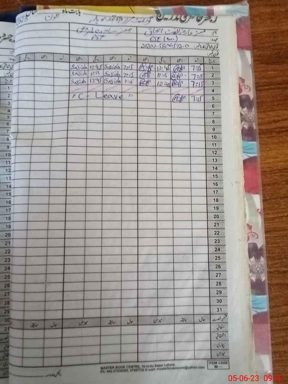 | CNIC | Full Name | Designation | R/C | Absence During Last Calender Month |