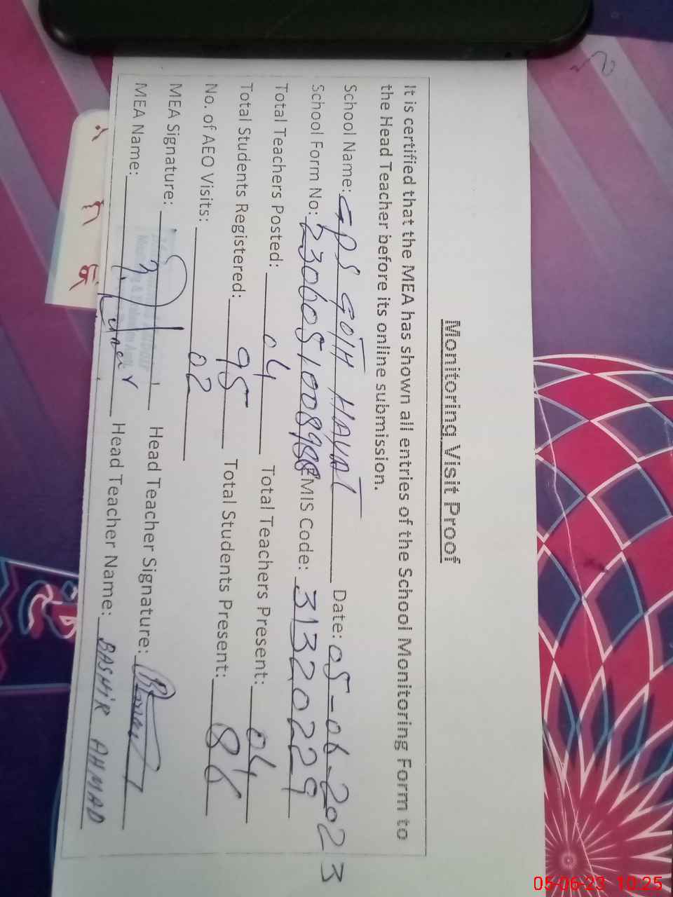 | EMIS Code: 31320229 | Name of School: GPS GOTH HAYAT | |||