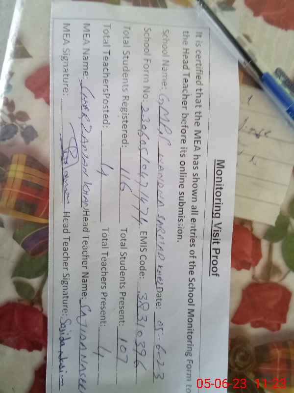 | EMIS Code: 38310396 | Name of School: GMPS WANDHA SARMAD KHEL | |||