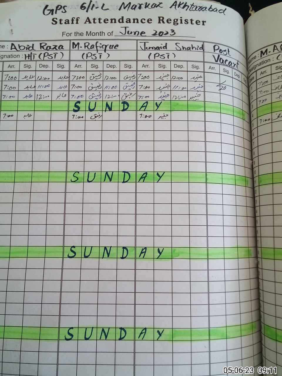 | Name: Mu**** Ra**** Designation: (School Headmaster's/Headmistress's) PST Phone/Cell Number: 03**** |