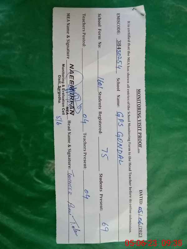 | EMIS Code: 38430254 | Name of School: GPS GONDAL | |||