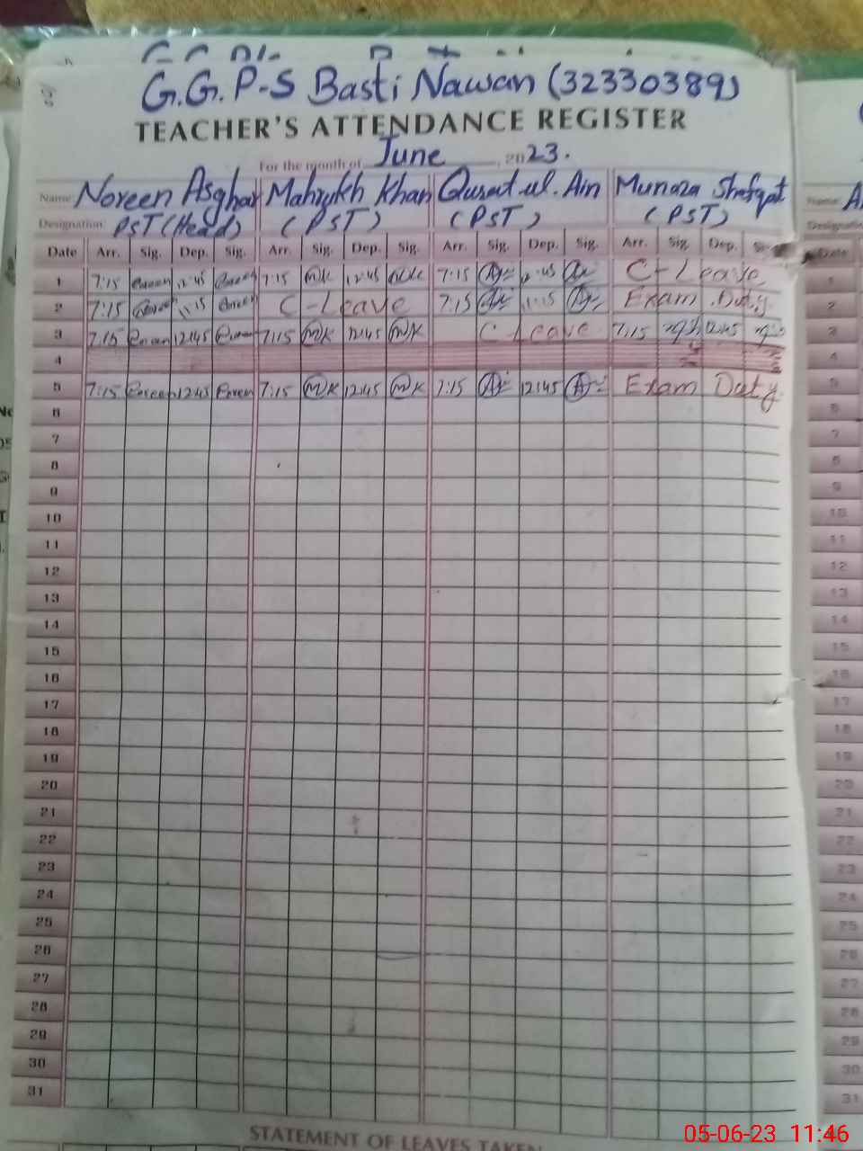 | 32**** | Mu**** Sh**** | PST | Regular | 0 | 0 | 0 | 0 | 0 | 0 | 0 | 0 | 0 | Exam Duty |