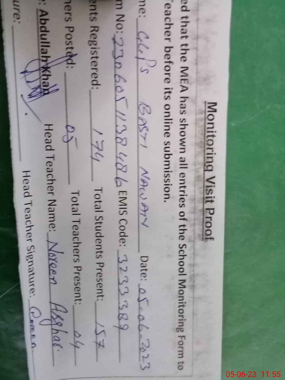 | Name: NO**** AS**** Designation: (School Headmaster's/Headmistress's) PST Phone/Cell Number: 03**** |