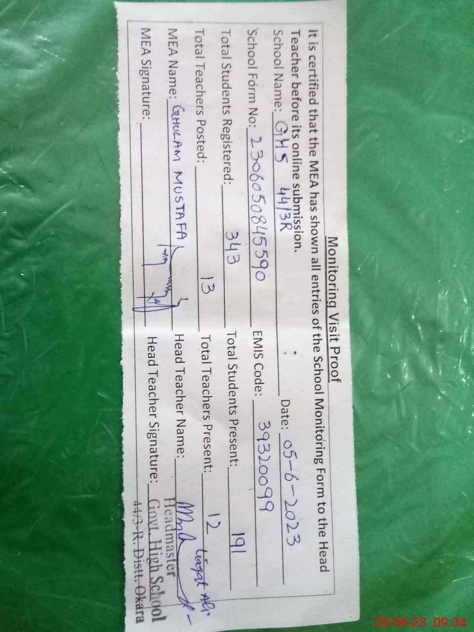 | EMIS Code: 39320099 | Name of School: GHS CHAK 44/3-R | |||