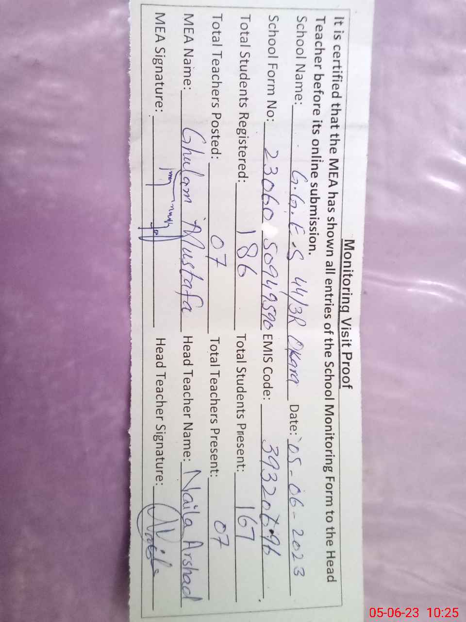 | EMIS Code: 39320696 | Name of School: GGES CHAK NO. 44/3-R | |||