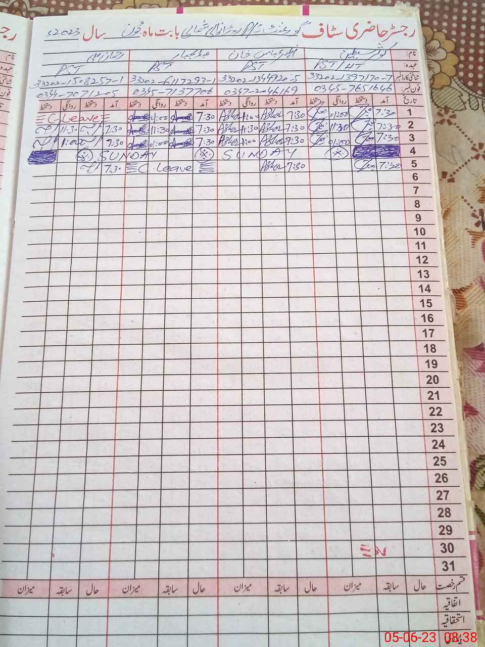 | CNIC | Full Name | Designation | R/C | Absence During Last Calender Month |