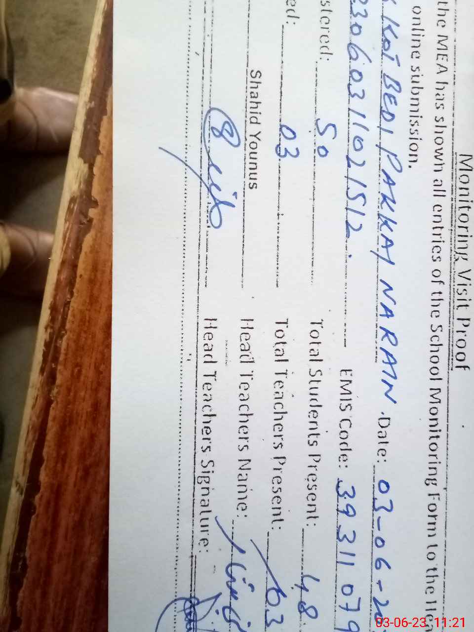 | EMIS Code: 39311079 | Name of School: GPS KOT BEDI (PAKKAY NARAIN) | |||
