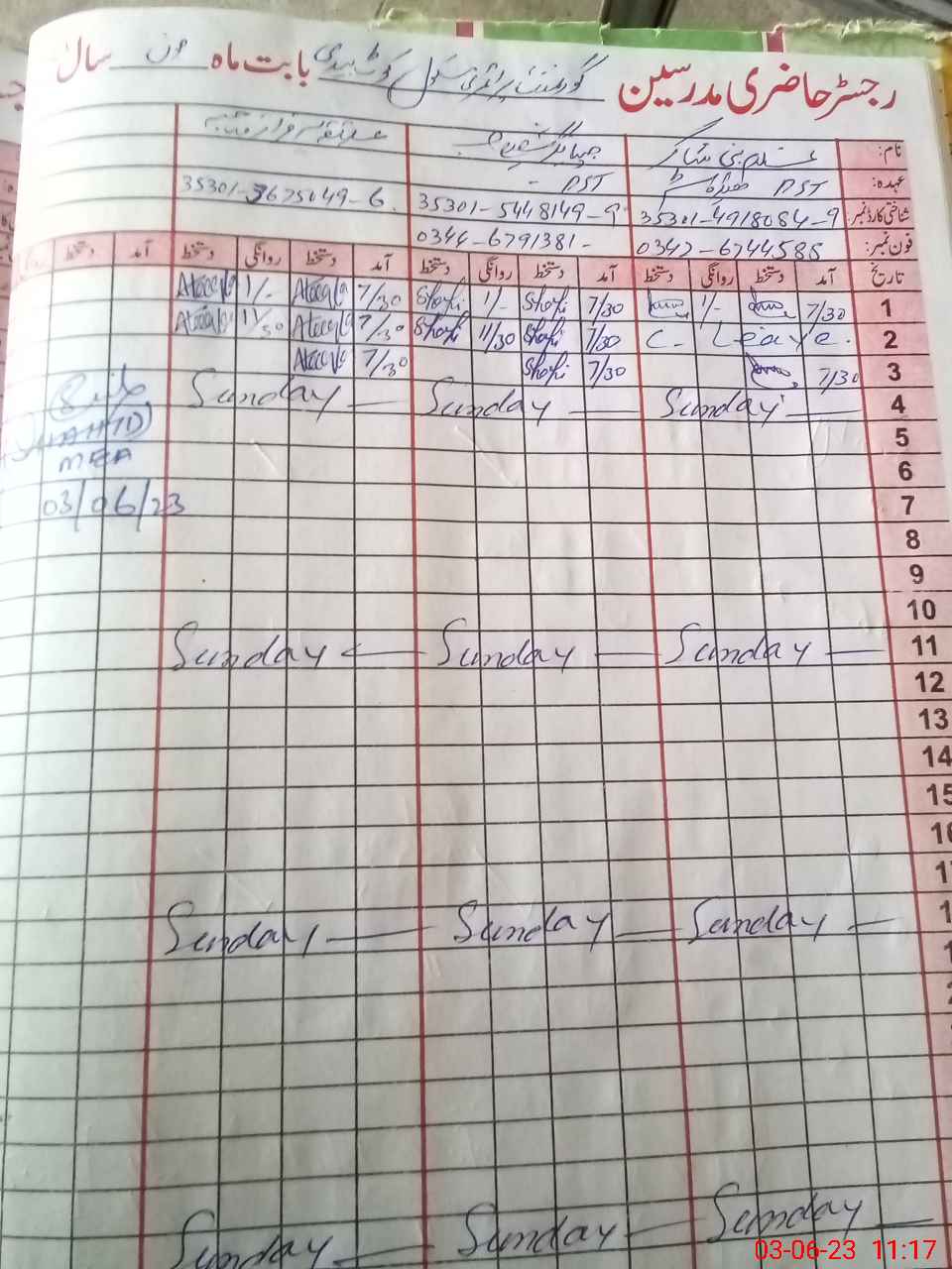 | Name: GH**** NA**** SH**** Designation: (School Headmaster's/Headmistress's) PST Phone/Cell Number: 03**** |