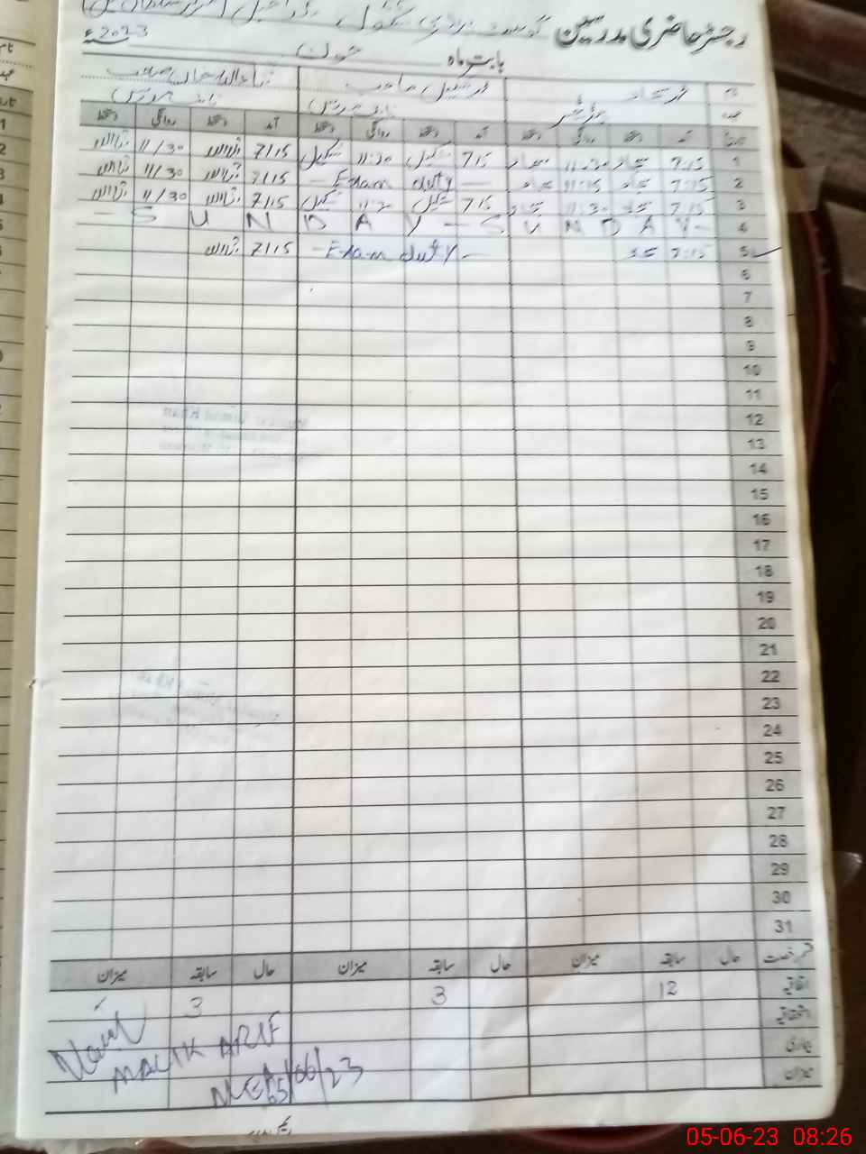 | 38**** | Mu**** Sh**** | PST | Regular | 0 | 0 | 0 | 0 | 0 | 0 | 0 | 0 | 0 | Exam Duty |
