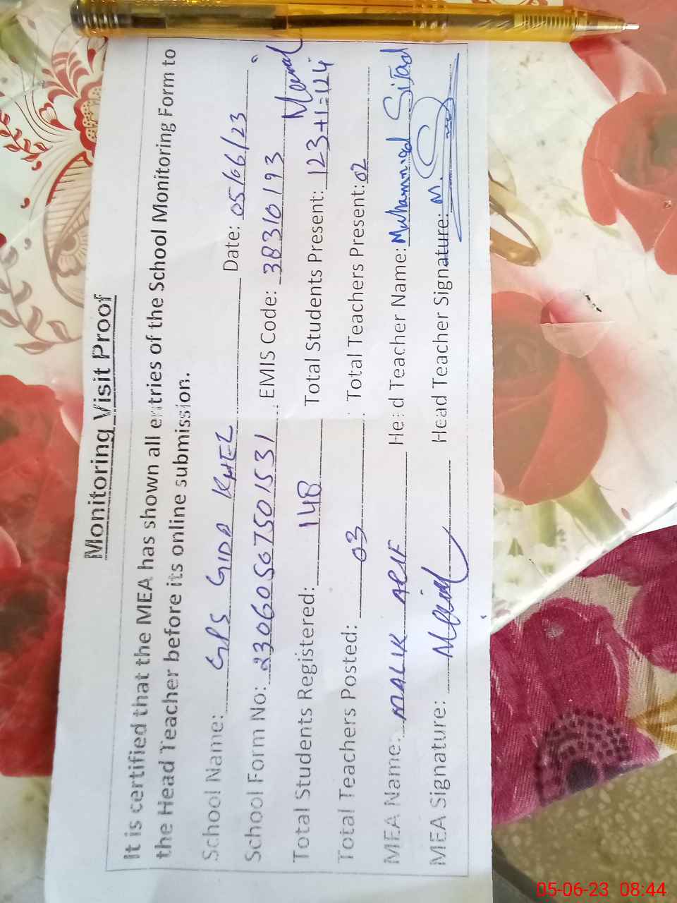 | EMIS Code: 38310193 | Name of School: GPS GIDDA KHEL | |||