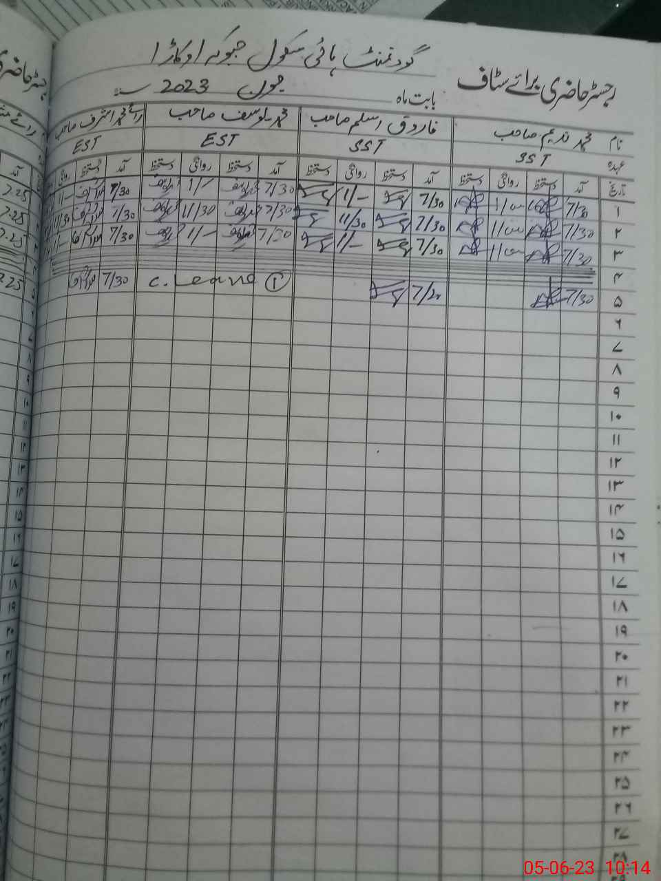 | 35**** | Mu**** Sa**** | Regular | 0 | 0 | 0 | 0 | 0 | 0 | 0 | 0 | 0 | Exam Duty | |