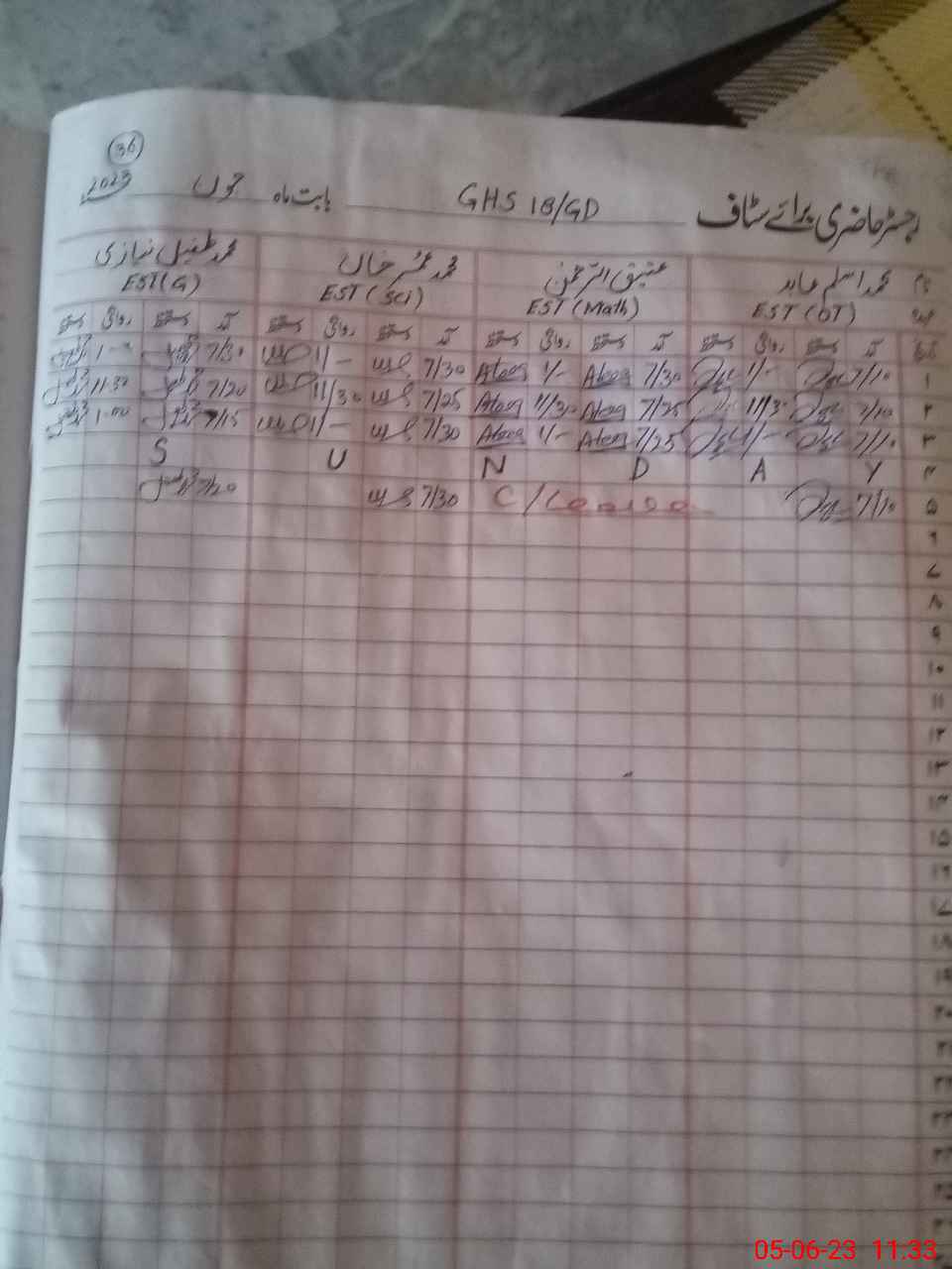 | 35**** | Mu**** Ha**** Kh**** | Regular | 0 | 22 | 0 | 0 | 0 | 0 | 0 | 0 | 0 | Exam Duty | |