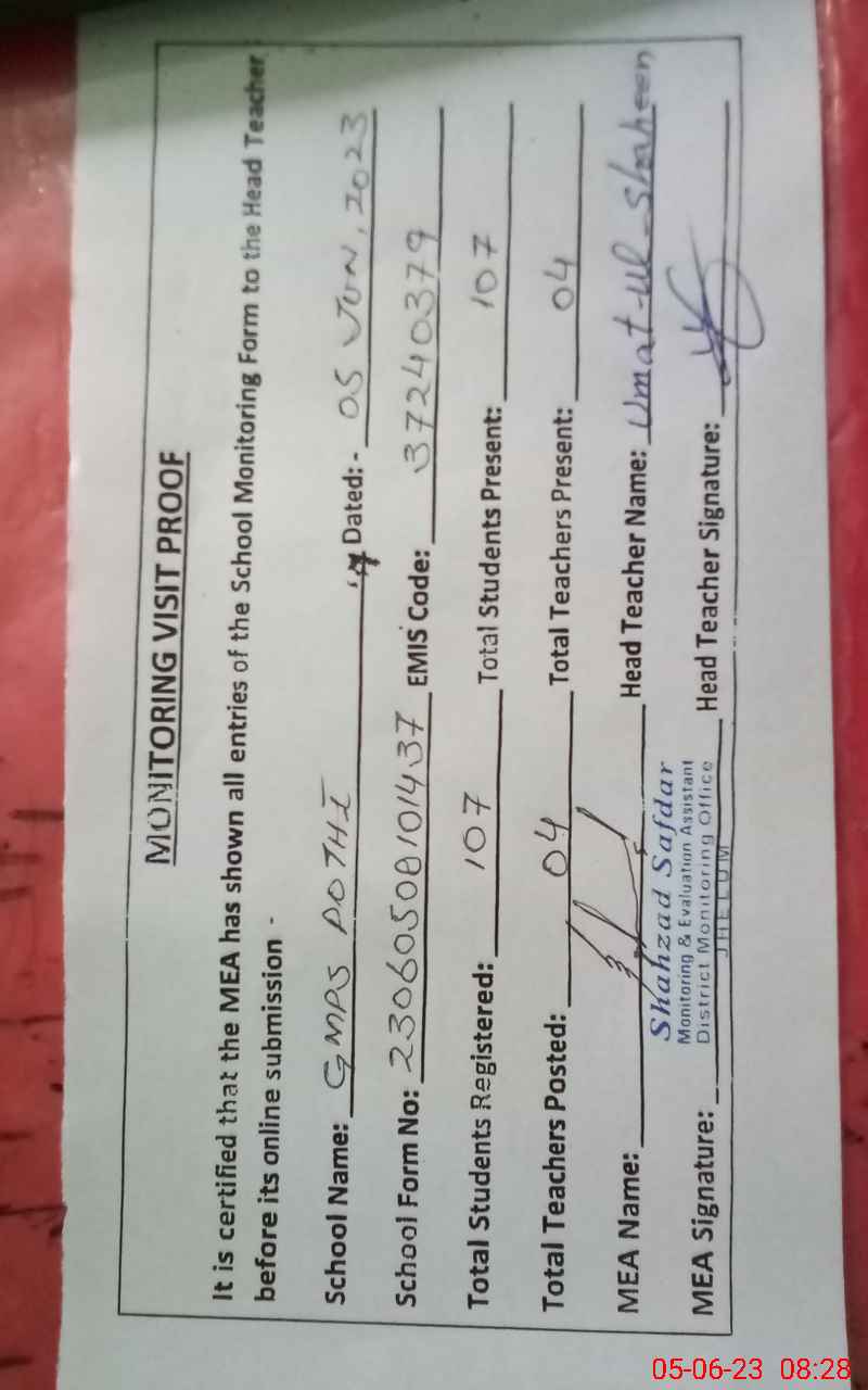 | EMIS Code: 37240379 | Name of School: GMPS POTHI | |||