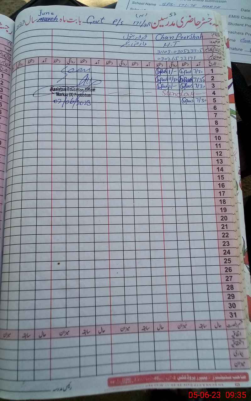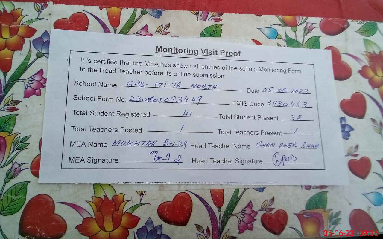 | EMIS Code: 31130453 | Name of School: GPS CHAK NO 171/7-R N | |||