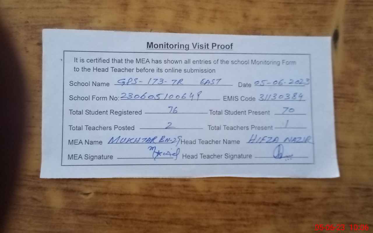 | EMIS Code: 31130384 | Name of School: GGPS CHAK NO 173/7-R E | |||