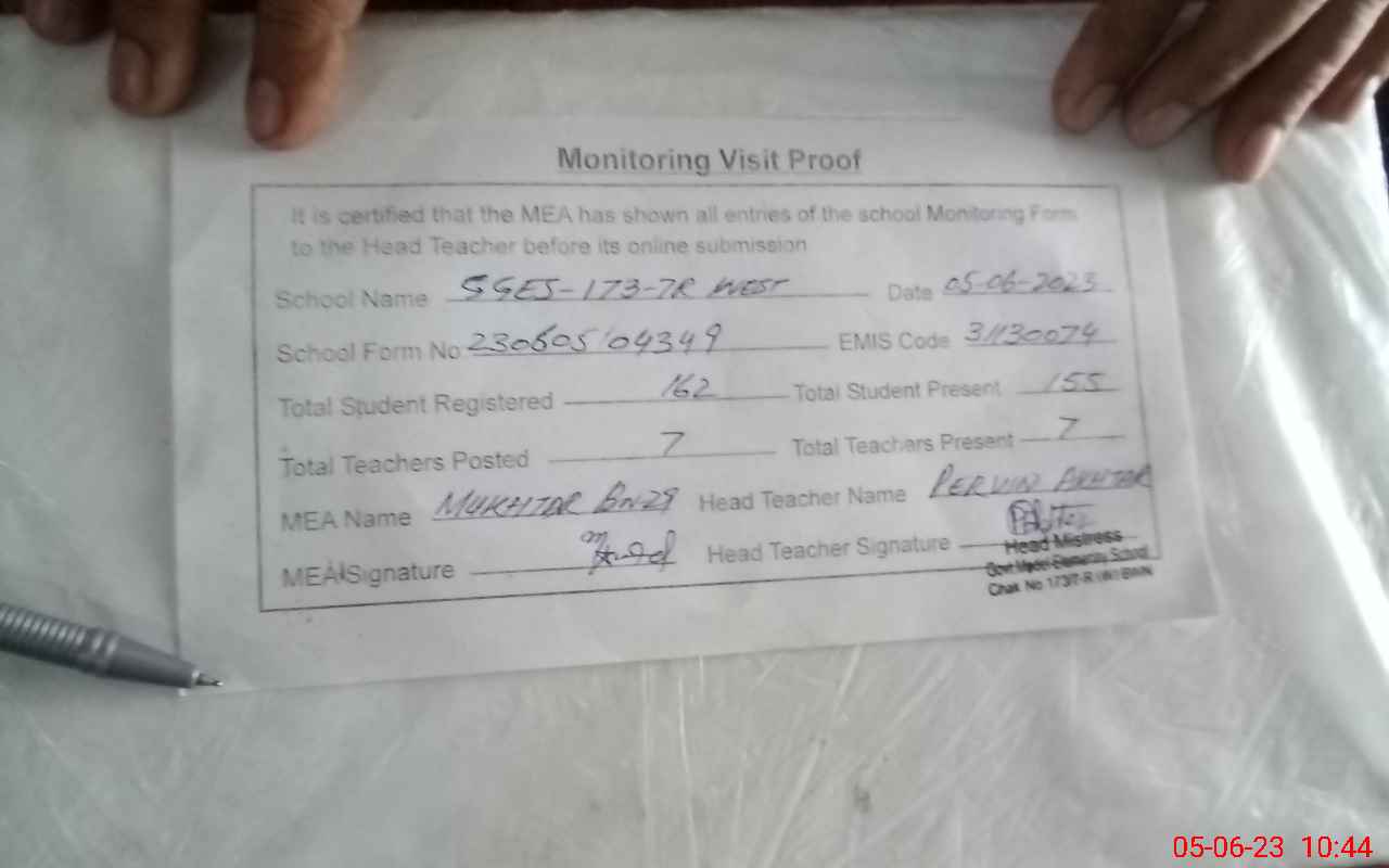 | EMIS Code: 31130074 | Name of School: GGES CHAK NO.173/7-R (W) | |||