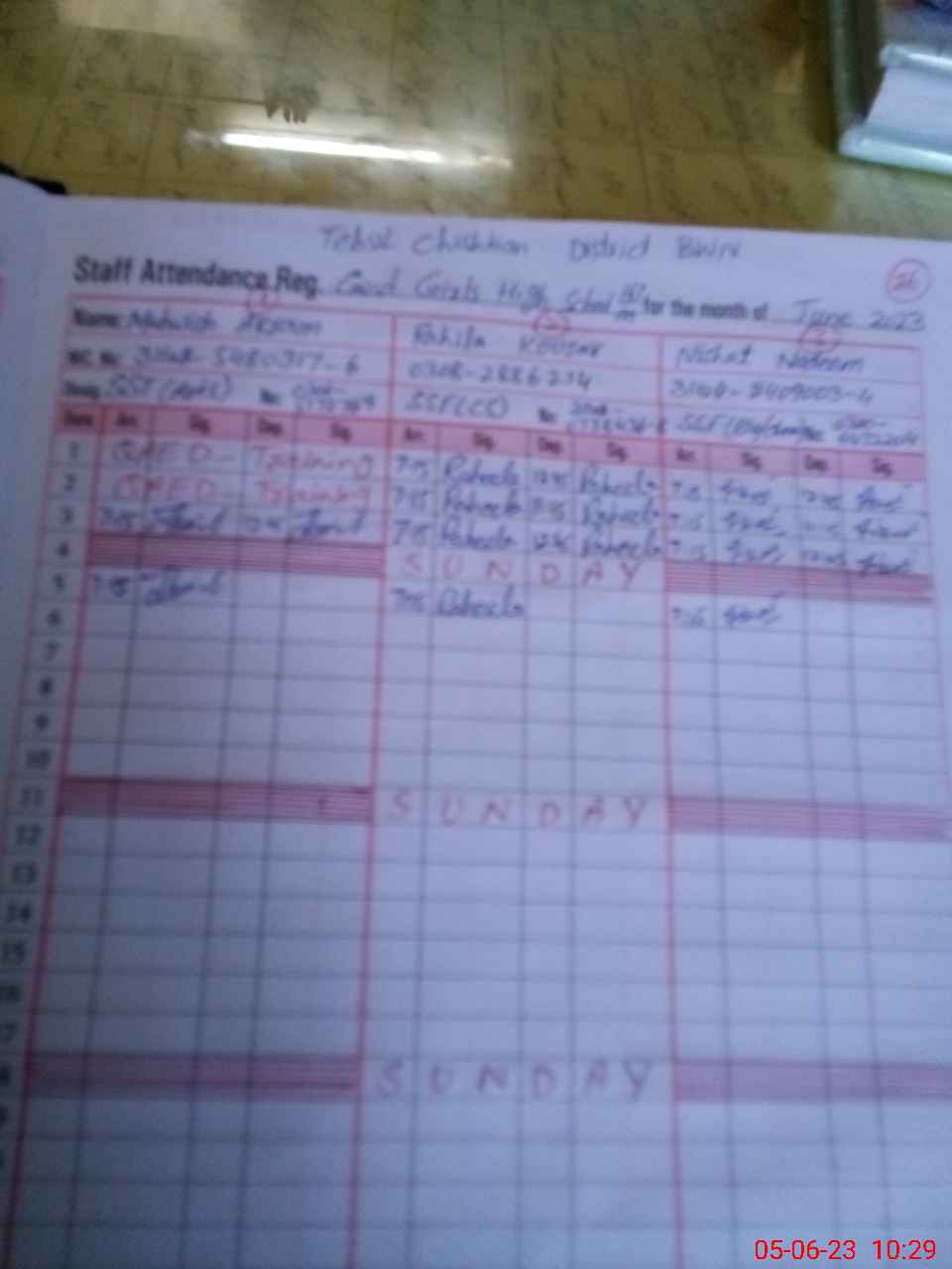 | CNIC | Full Name | Designation | R/C | Absence During Last Calender Month |