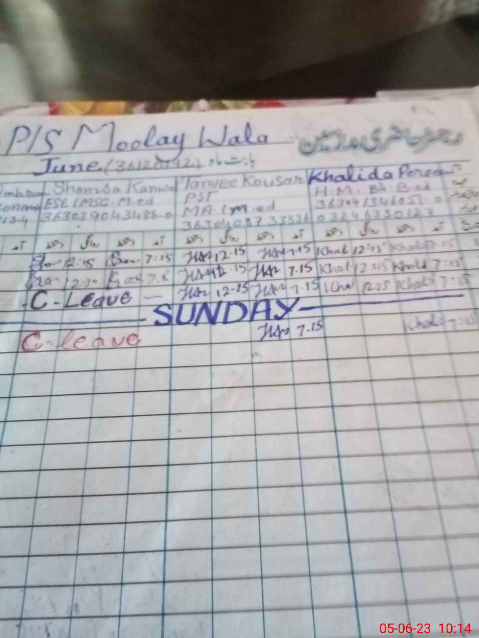 | 36**** | Sa**** Am**** | PST | Regular | 0 | 0 | 0 | 0 | 0 | 0 | 0 | 0 | 0 | Maternity |