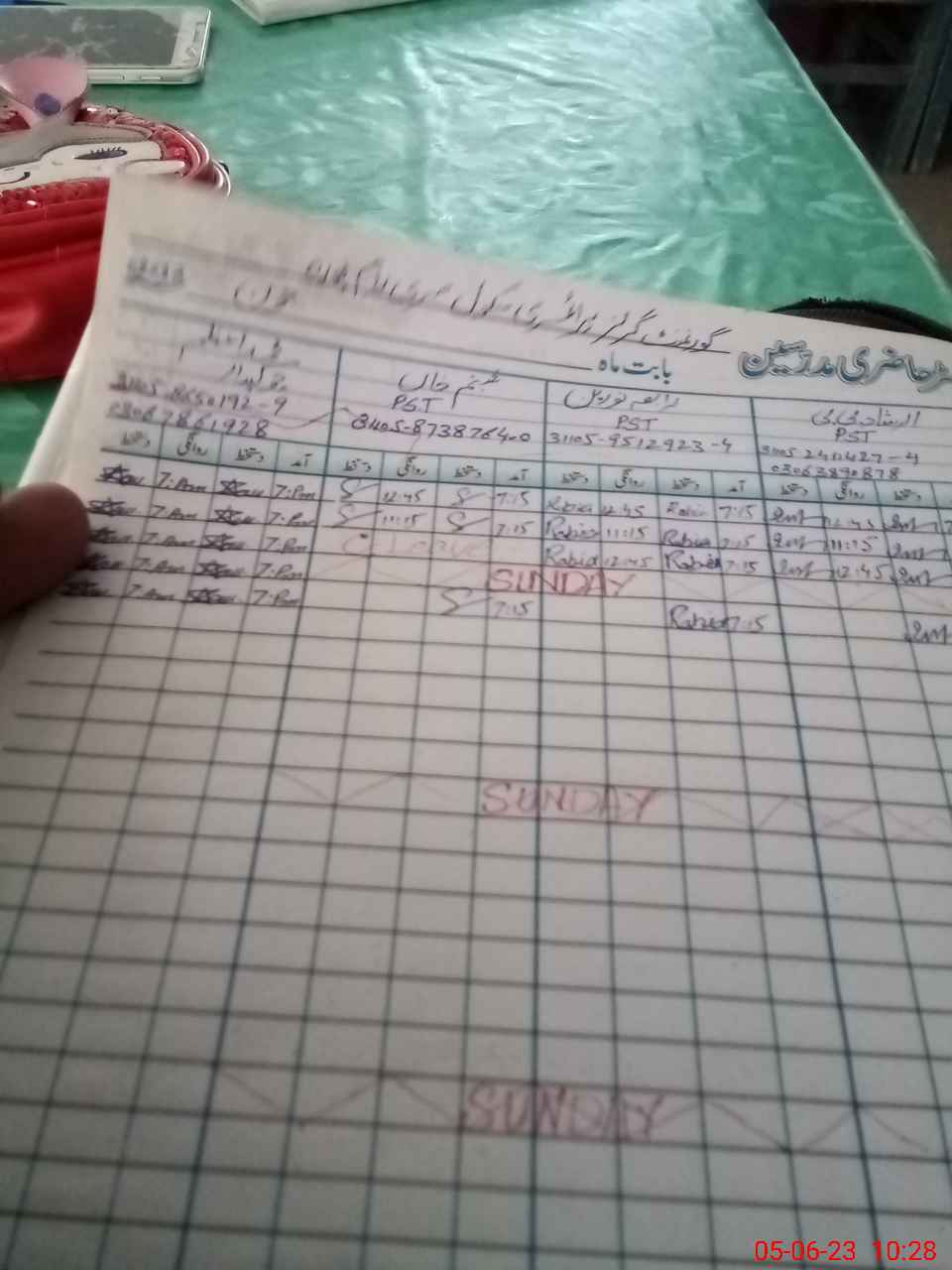 | Name: IR**** BI**** Designation: (School Headmaster's/Headmistress's) P S T Phone/Cell Number: 03**** |