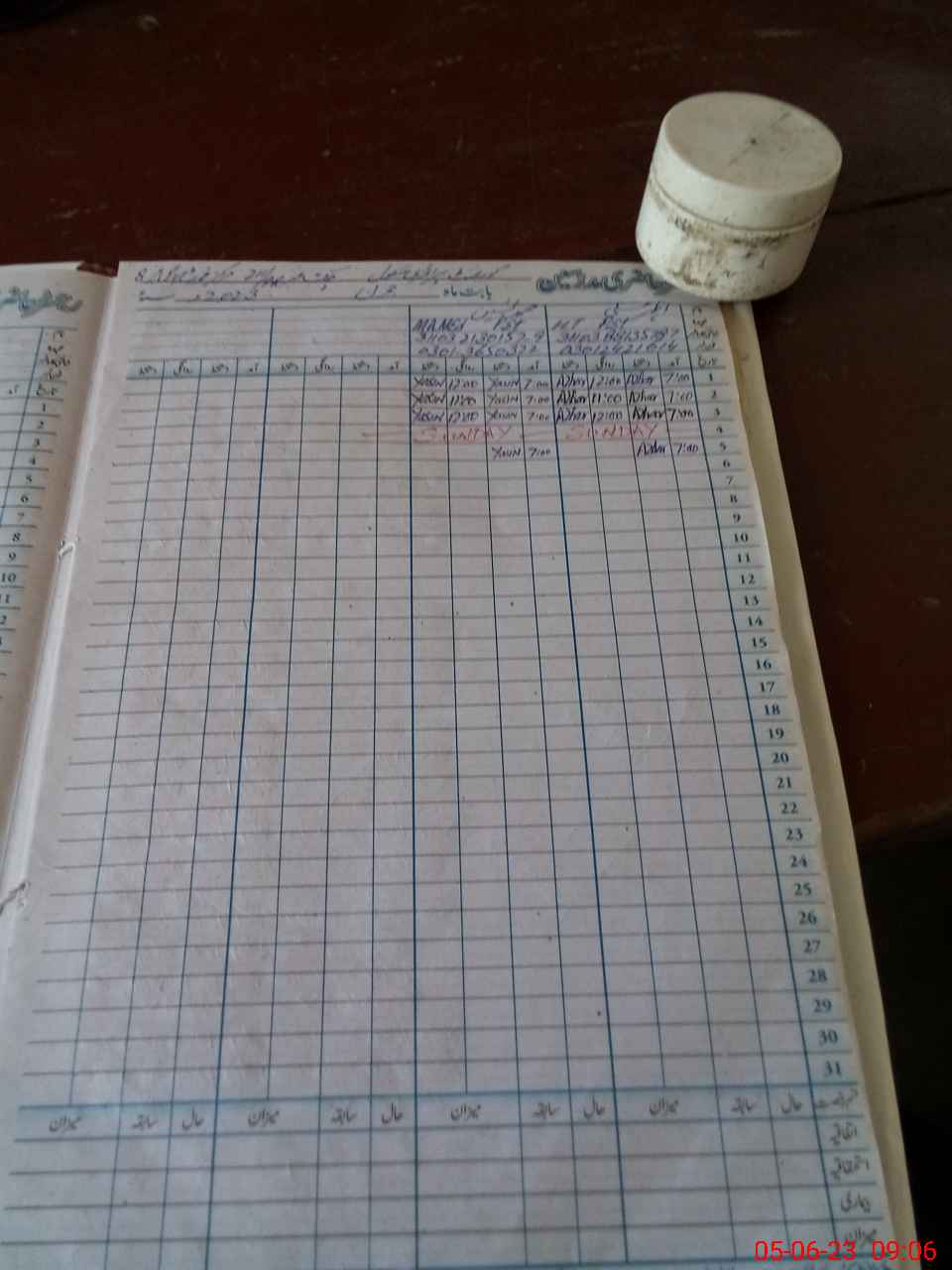 | CNIC | Full Name | Designation | R/C | Absence During Last Calender Month |
