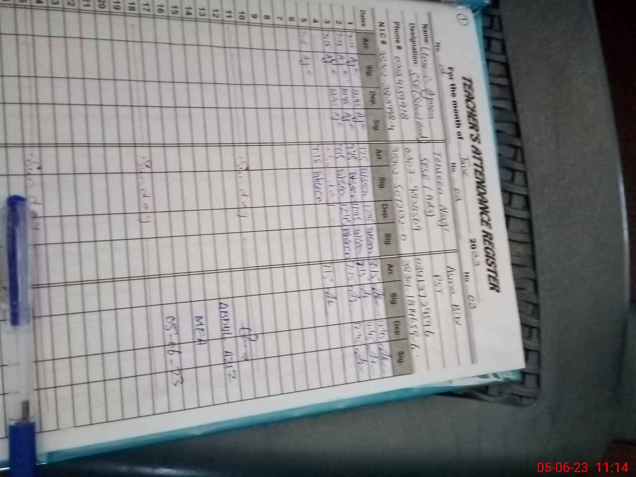 | CNIC | Full Name | Designation | R/C | Absence During Last Calender Month |