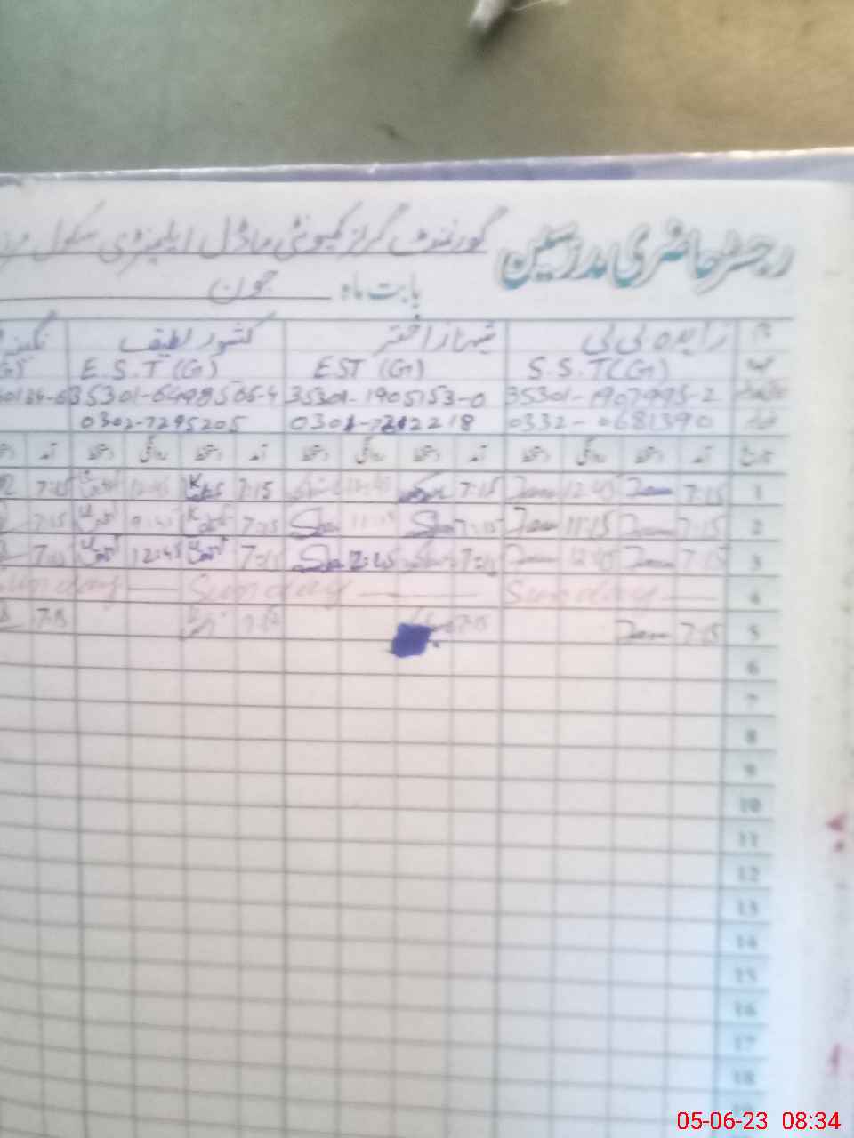 | Name: Ki**** Ha**** Designation: (School Headmaster's/Headmistress's) EST Phone/Cell Number: 03**** |