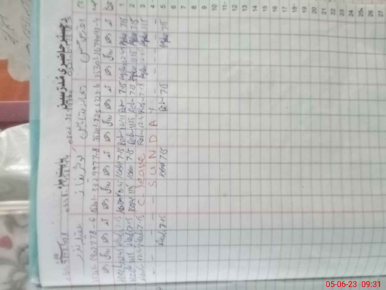 | CNIC | Full Name | Designation | R/C | Absence During Last Calender Month |