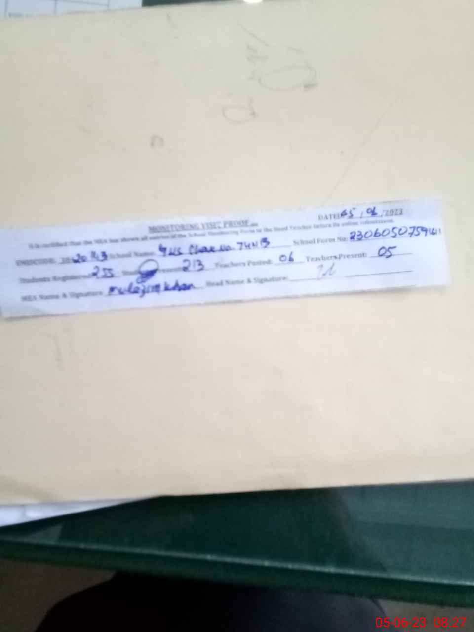 | Monitoring Date: 05-06-2023 | Start Time: 05-06-2023 07:53 AM | End Time: 05-06-2023 08:27 AM | Name of MEA: MU**** KH**** | |