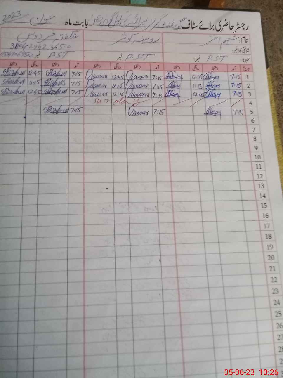 | Name: Sh**** Ak**** Designation: (School Headmaster's/Headmistress's) PST Phone/Cell Number: 03**** |