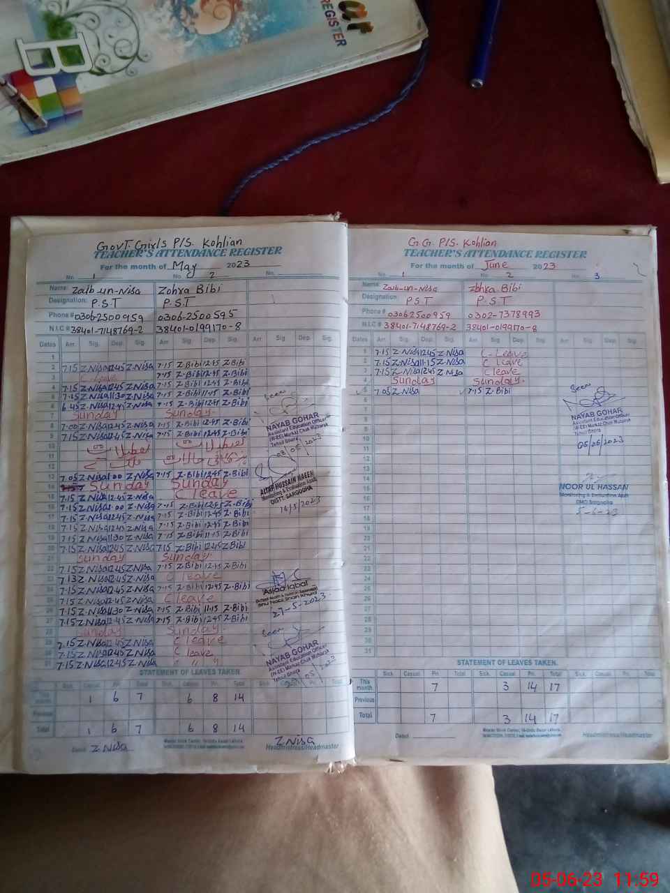 | Name: ZA**** UNNI**** Designation: (School Headmaster's/Headmistress's) PST Phone/Cell Number: 03**** |