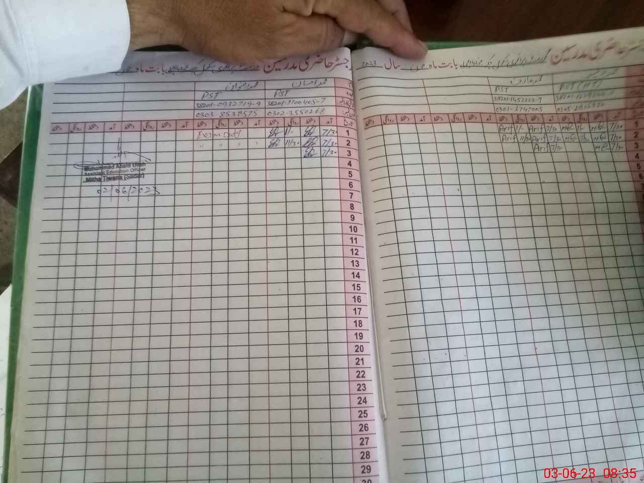 | Name: Mu**** Wa**** Designation: (School Headmaster's/Headmistress's) PST Phone/Cell Number: 03**** |
