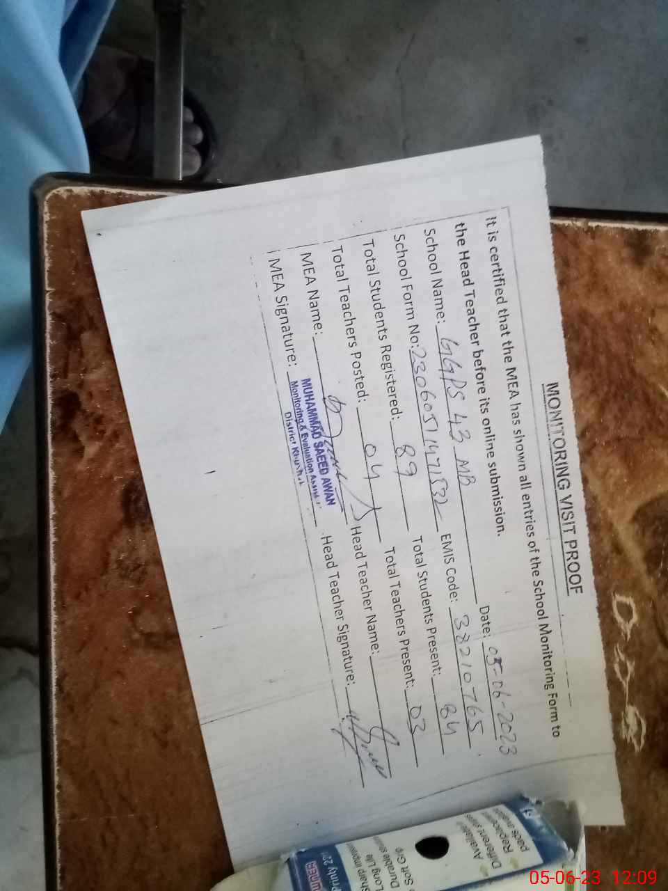 | EMIS Code: 38210765 | Name of School: GGPS CHAK NO 43 MB | |||