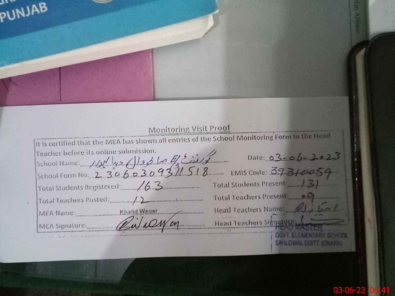 | EMIS Code: 39310059 | Name of School: GES SAHLOWAL | |||