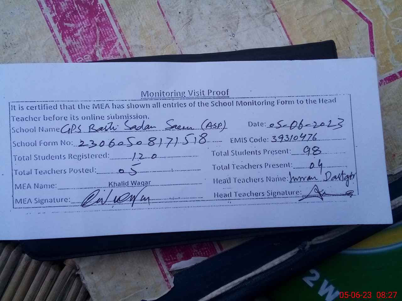 | EMIS Code: 39310476 | Name of School: GPS BASTI SADAN SAIN | |||