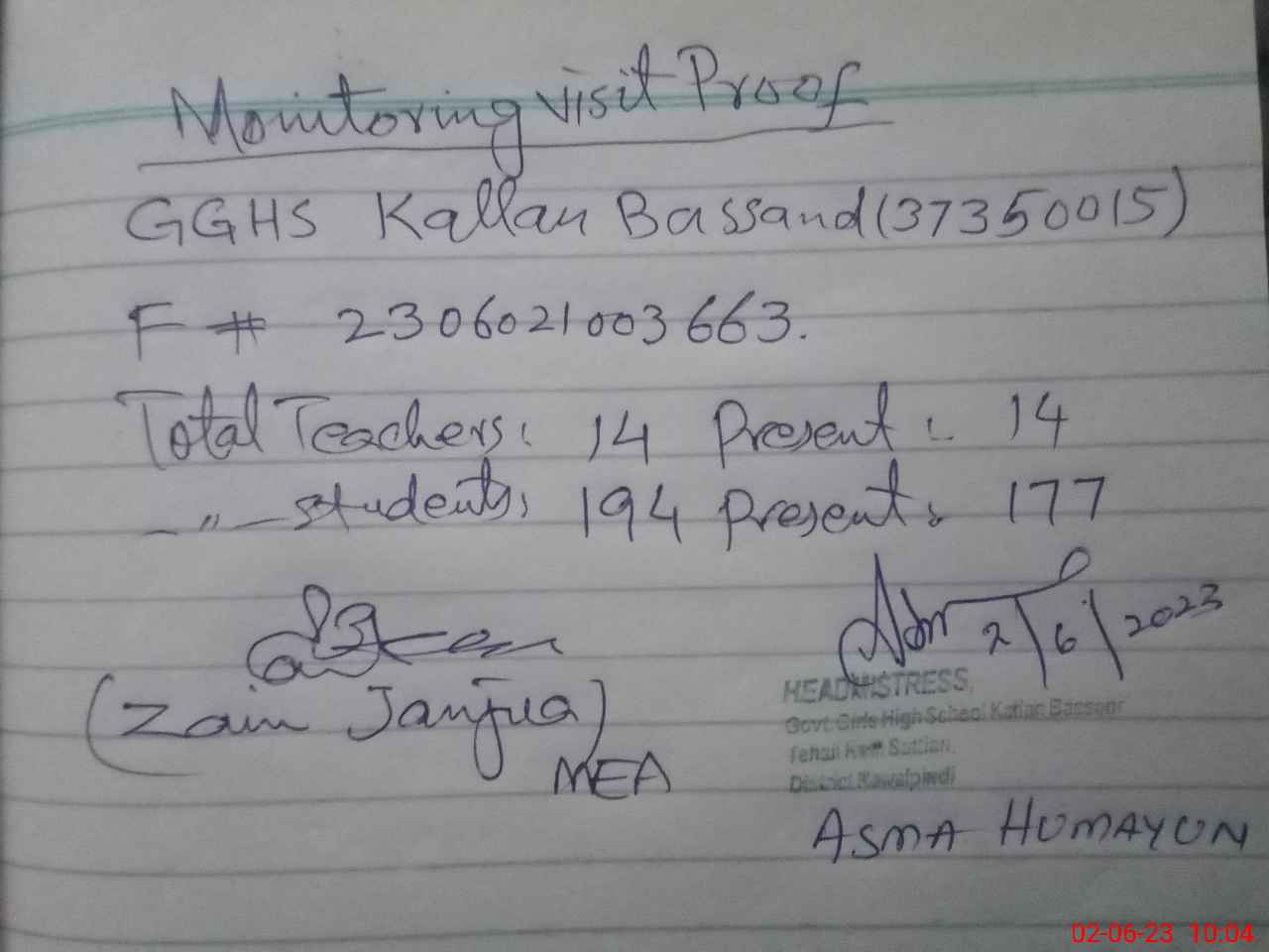 | Monitoring Date: 02-06-2023 | Start Time: 02-06-2023 09:26 AM | End Time: 02-06-2023 10:05 AM | Name of MEA: ZA**** ULAB**** (R**** | |