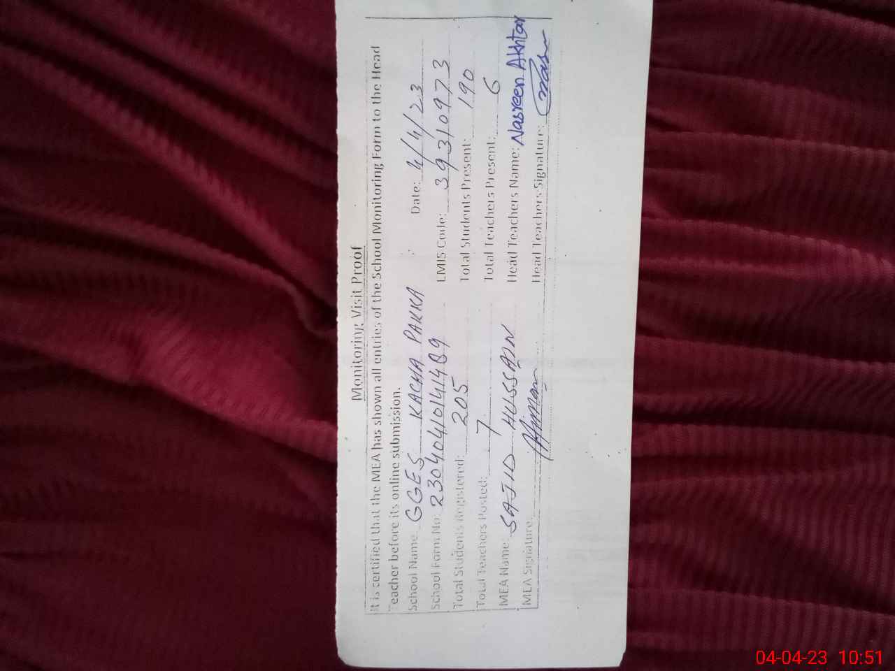 | EMIS Code: 39310973 | Name of School: GGES KACHA PAKKA | |||