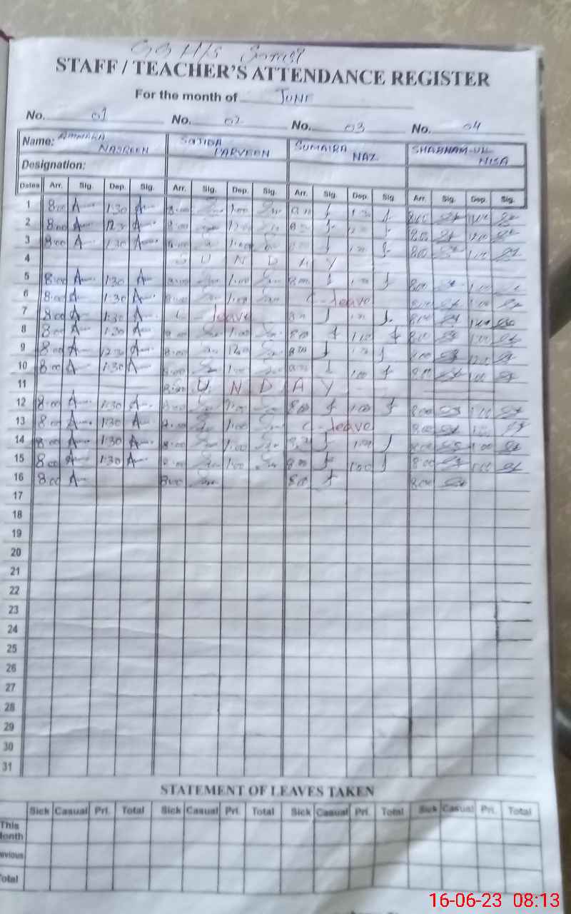 | Monitoring Date: 16-06-2023 | Start Time: 16-06-2023 08:00 AM | End Time: 16-06-2023 08:26 AM | Name of MEA: Za**** Ah**** | |