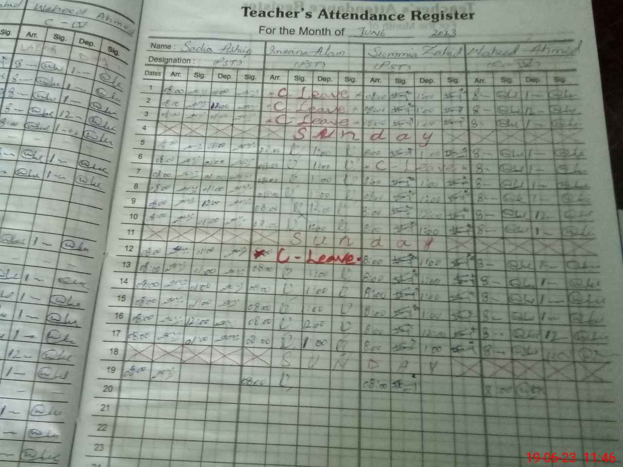 | CNIC | Full Name | Designation | R/C | Absence During Last Calender Month |