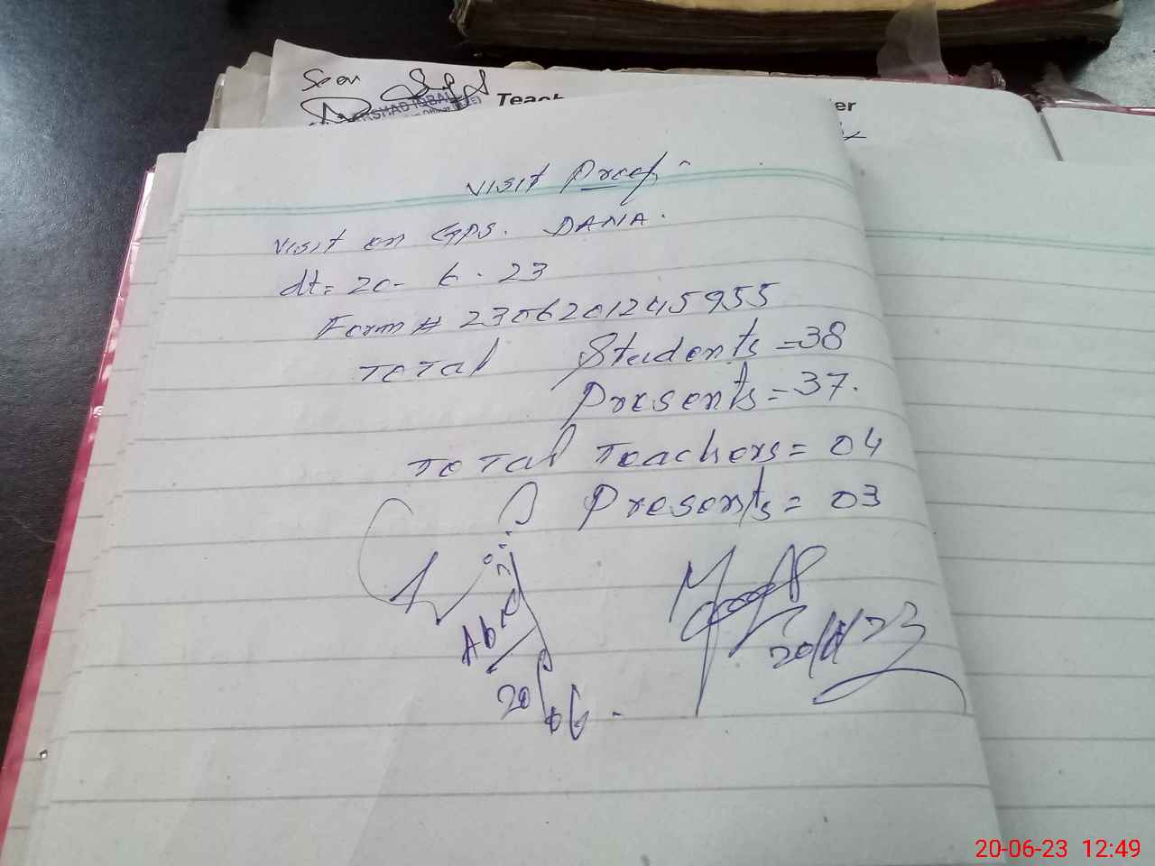 | Attendance Register | Head Teacher | MEA with School | Visit Proof |